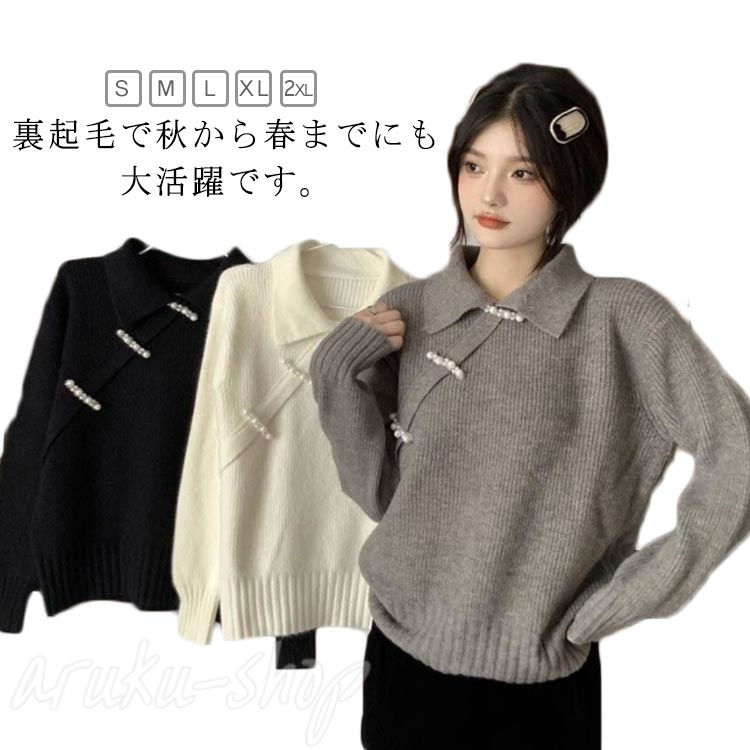 ニット 長袖 ニットトップス 長袖 チャイナ風 レディース プルオーバー 通勤 セーター ゆったり レトロ トップス 秋冬 折り襟 暖かい おしゃれ きれい 可愛い ア
