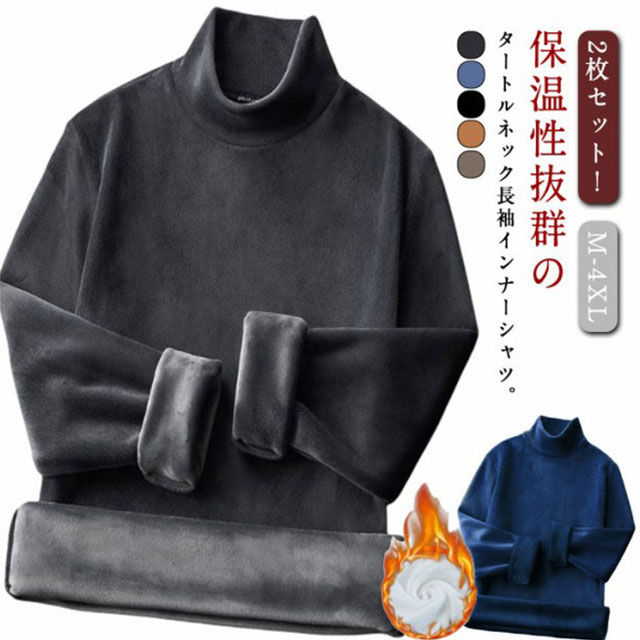 2枚セット シャツ メンズ 長袖 ハイネック インナー ロンT 秋冬 両面起毛 インナーシャツ 防寒着 防寒 肌着 あったか ヒートインナー あったかインナー ストレッチ トップス カットソ 柔らかい