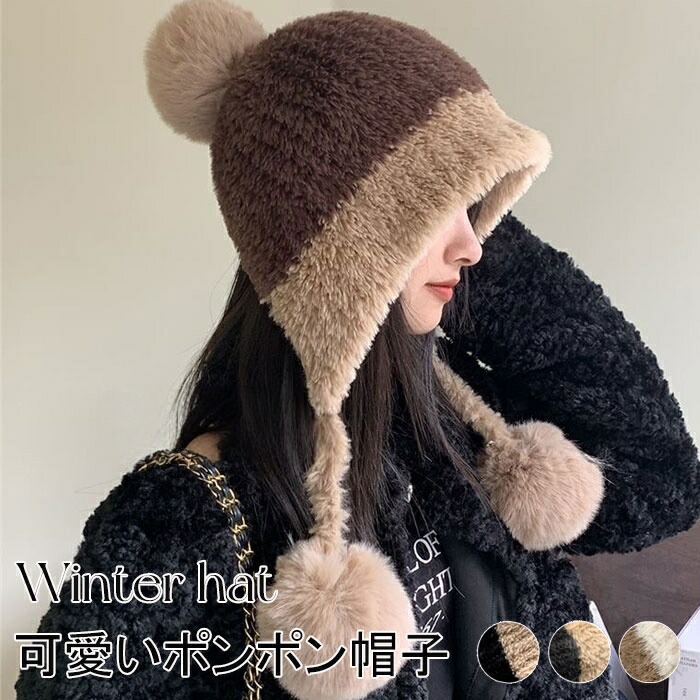 1. ニット帽 ポンポン付き 耳当て レディース 秋冬 防寒 おしゃれ 暖かい 2. ふわふわ もこもこ 帽子 スノーボード スキー ニットキャップ 3. ポンポン 冬用