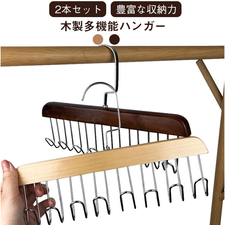 木製 ハンガー ネクタイハンガー すべらない 8フック付き ベルトハンガー 下着ハンガー キャミソールハンガー 収納 スカーフハンガー 省スペース ラック